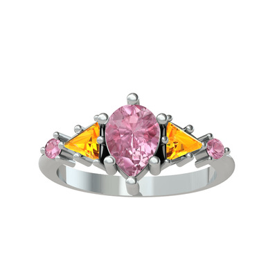 Pembe kuvars ve sitrin 14 ayar beyaz altın yüzük