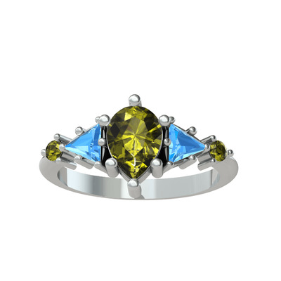 Peridot ve akuamarin 925 ayar gümüş yüzük