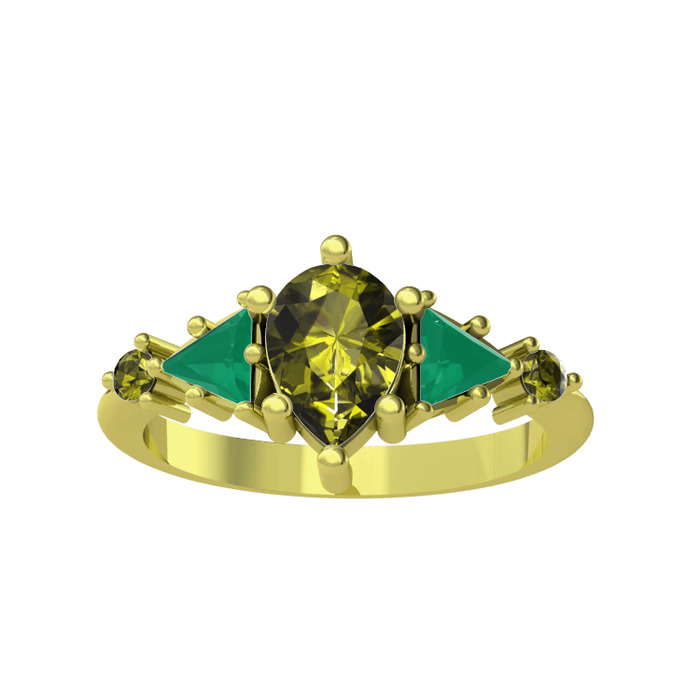 Peridot ve kök zümrüt 8 ayar altın yüzük