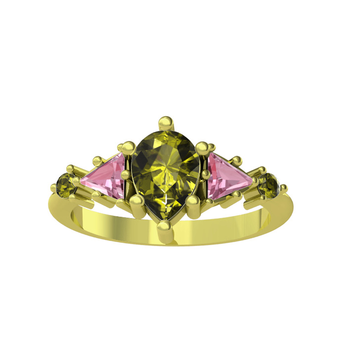 Peridot ve pembe kuvars 925 ayar altın kaplama gümüş yüzük