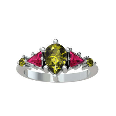 Peridot ve rodolit garnet 18 ayar beyaz altın yüzük