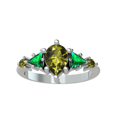Peridot ve yeşil kuvars 925 ayar gümüş yüzük