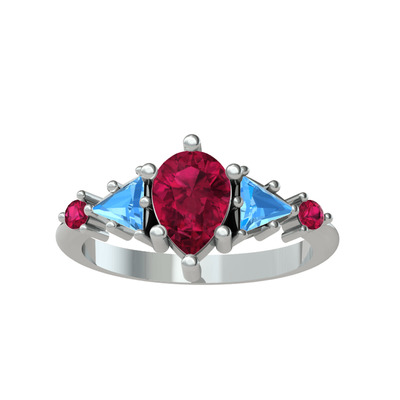 Rodolit garnet ve akuamarin 18 ayar beyaz altın yüzük