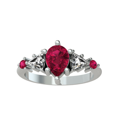 Rodolit garnet ve beyaz zirkon 18 ayar beyaz altın yüzük