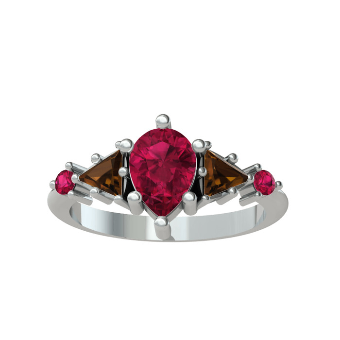 Rodolit garnet ve dumanlı kuvars 14 ayar beyaz altın yüzük