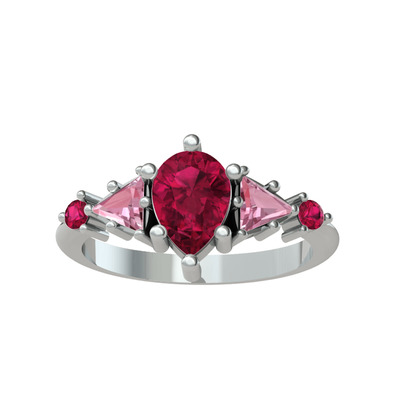 Rodolit garnet ve pembe kuvars 14 ayar beyaz altın yüzük