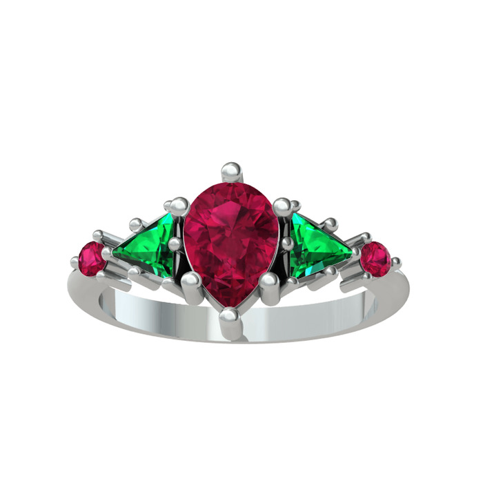 Rodolit garnet ve yeşil kuvars 14 ayar beyaz altın yüzük