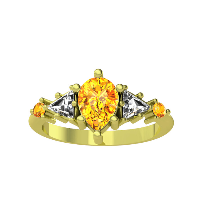 Sitrin ve beyaz zirkon 14 ayar altın yüzük