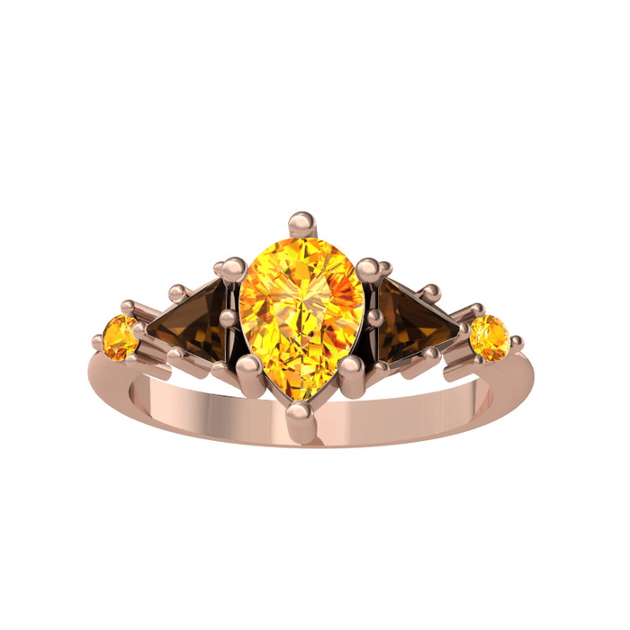 Sitrin ve dumanlı kuvars 18 ayar rose altın yüzük