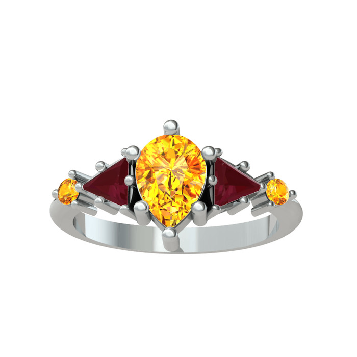 Sitrin ve kök yakut 18 ayar beyaz altın yüzük