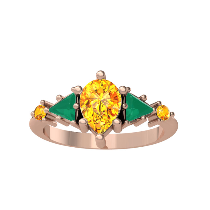 Sitrin ve kök zümrüt 14 ayar rose altın yüzük