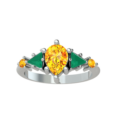 Sitrin ve kök zümrüt 18 ayar beyaz altın yüzük