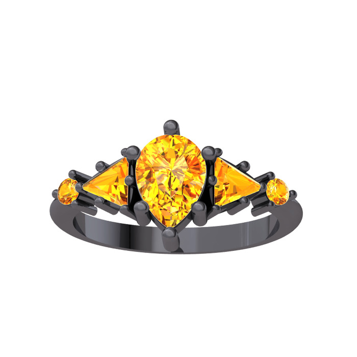Sitrin 925 ayar siyah rodyum kaplama gümüş yüzük
