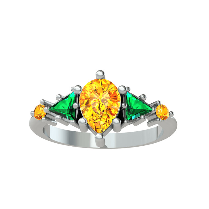 Sitrin ve yeşil kuvars 14 ayar beyaz altın yüzük