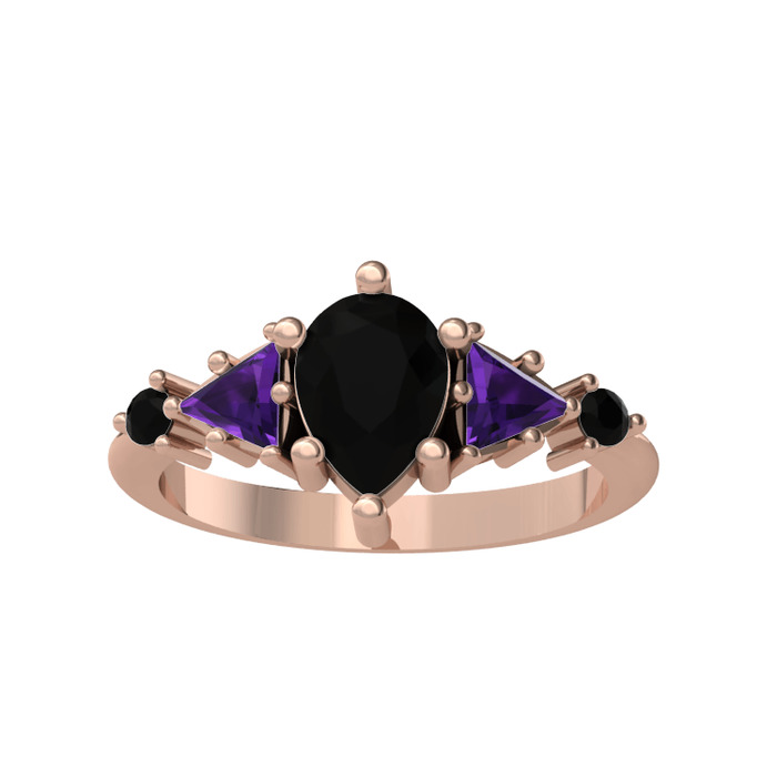 Siyah zirkon ve ametist 14 ayar rose altın yüzük