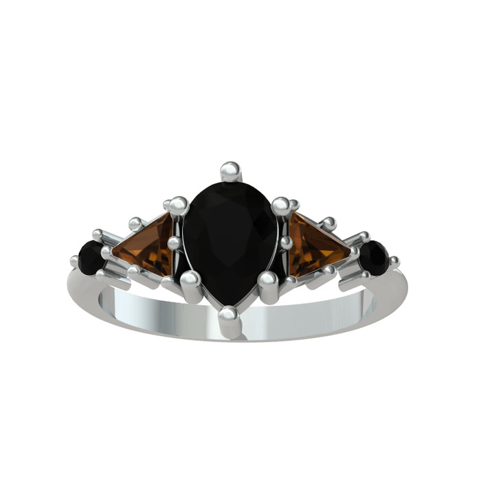 Siyah zirkon ve dumanlı kuvars 925 ayar gümüş yüzük