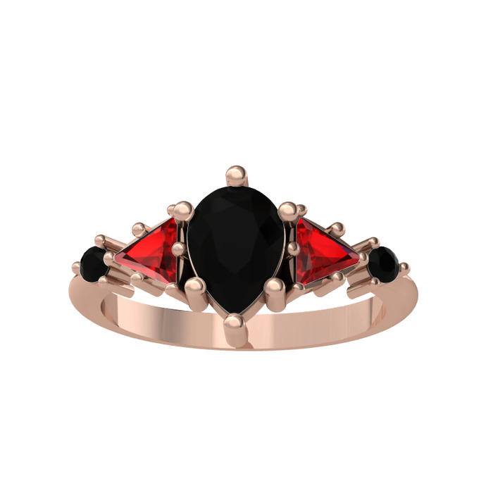 Siyah zirkon ve garnet 14 ayar rose altın yüzük
