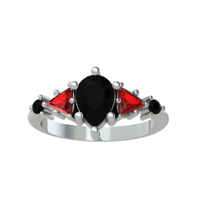 Siyah zirkon ve garnet 925 ayar gümüş yüzük