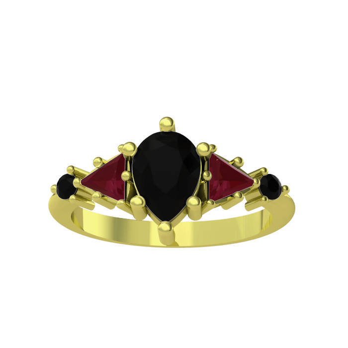 Siyah zirkon ve kök yakut 925 ayar altın kaplama gümüş yüzük