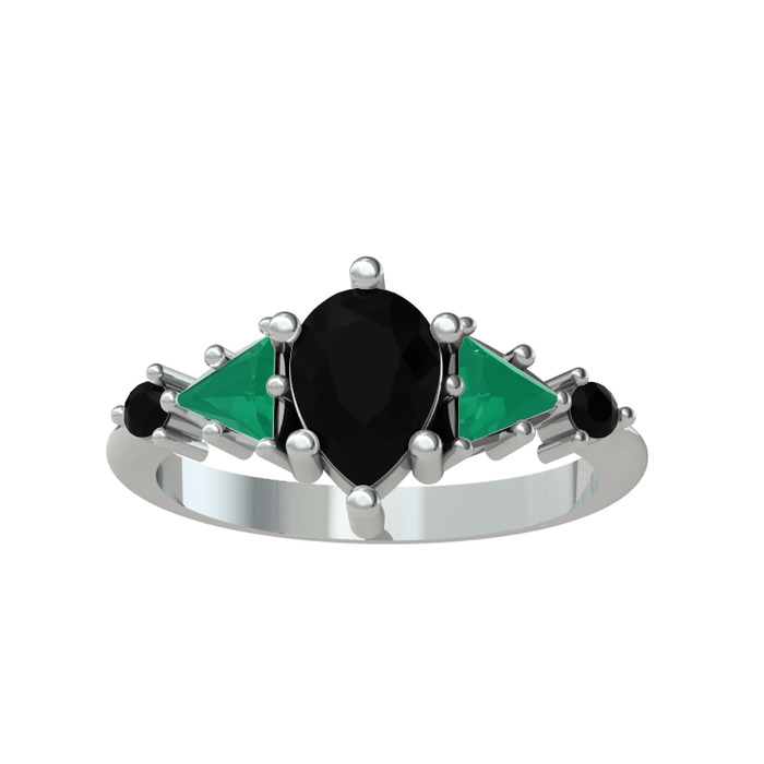 Siyah zirkon ve kök zümrüt 8 ayar beyaz altın yüzük