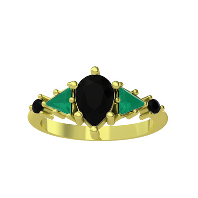 Siyah zirkon ve kök zümrüt 925 ayar altın kaplama gümüş yüzük