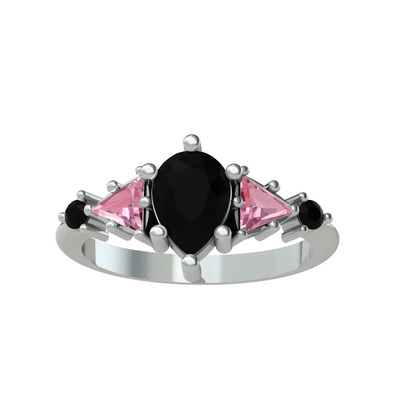 Siyah zirkon ve pembe kuvars 14 ayar beyaz altın yüzük