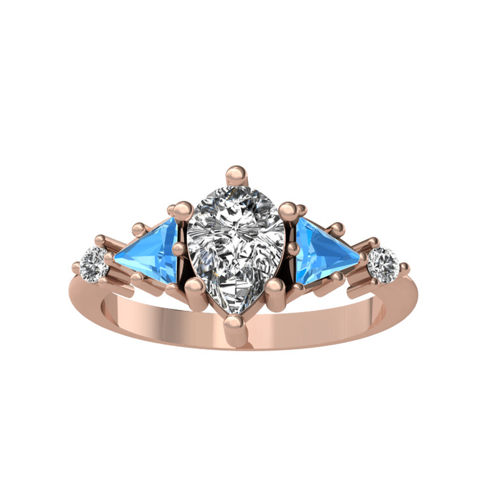 Swarovski ve akuamarin 925 ayar rose altın kaplama gümüş yüzük