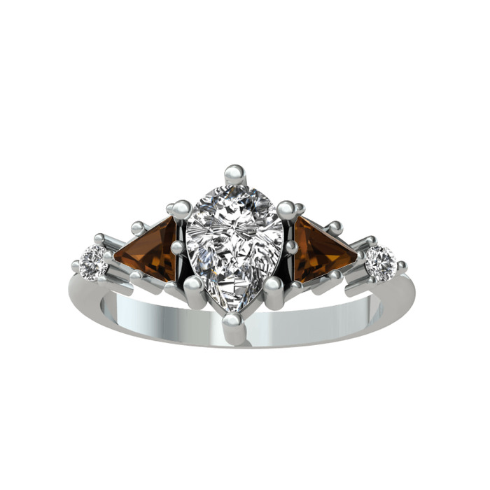 Swarovski ve dumanlı kuvars 18 ayar beyaz altın yüzük