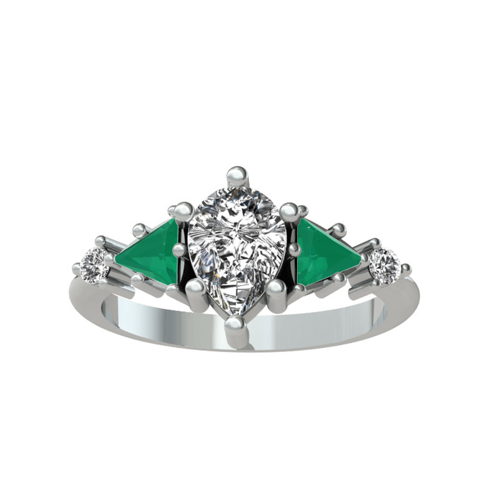 Swarovski ve kök zümrüt 18 ayar beyaz altın yüzük