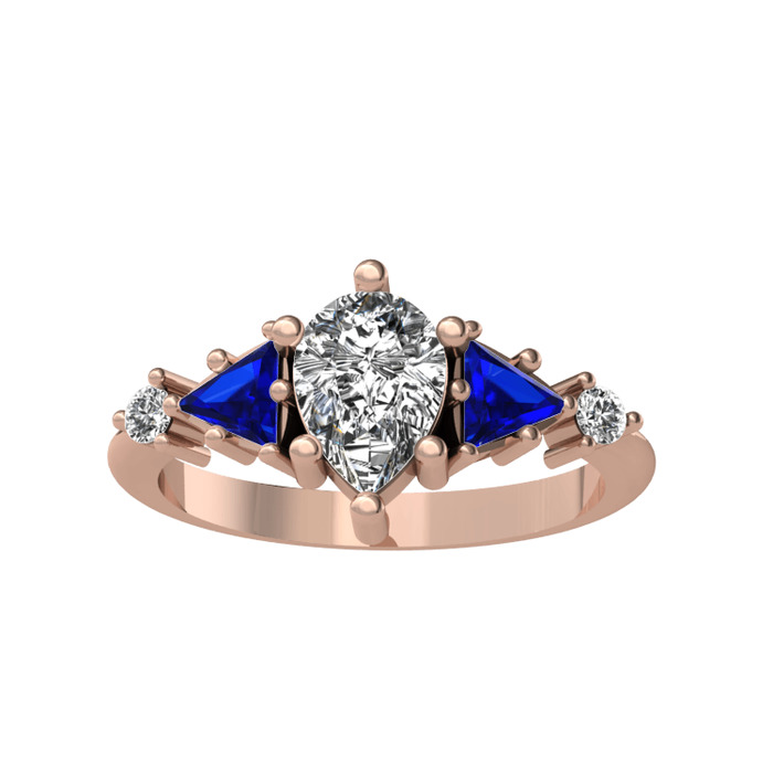 Swarovski ve lab safir 14 ayar rose altın yüzük