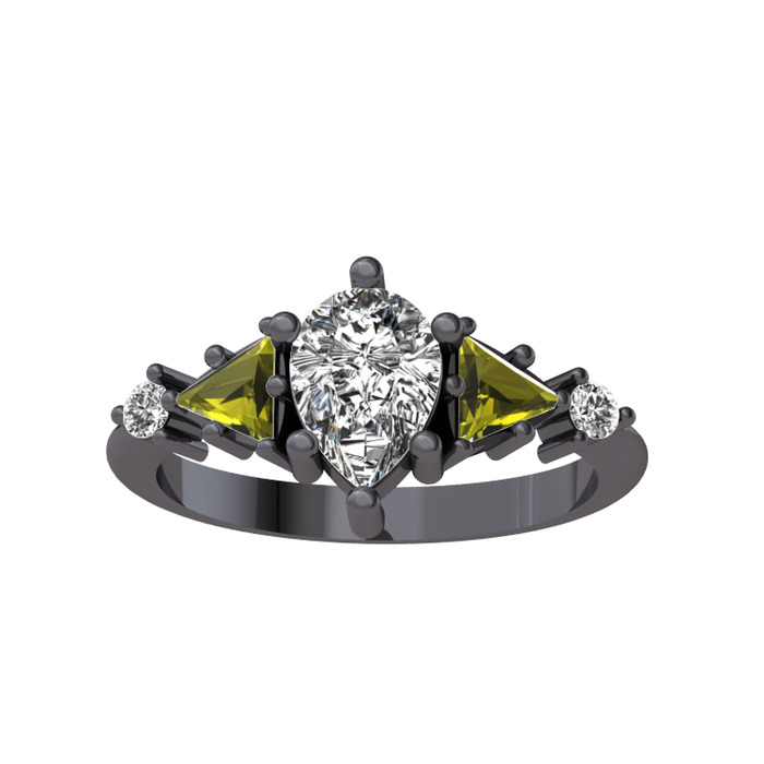 Swarovski ve peridot 925 ayar siyah rodyum kaplama gümüş yüzük