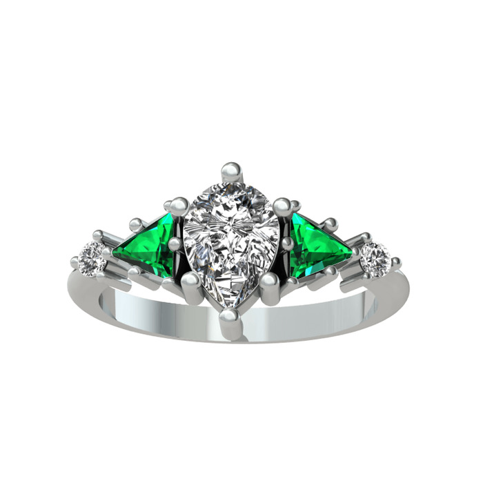 Swarovski ve yeşil kuvars 8 ayar beyaz altın yüzük