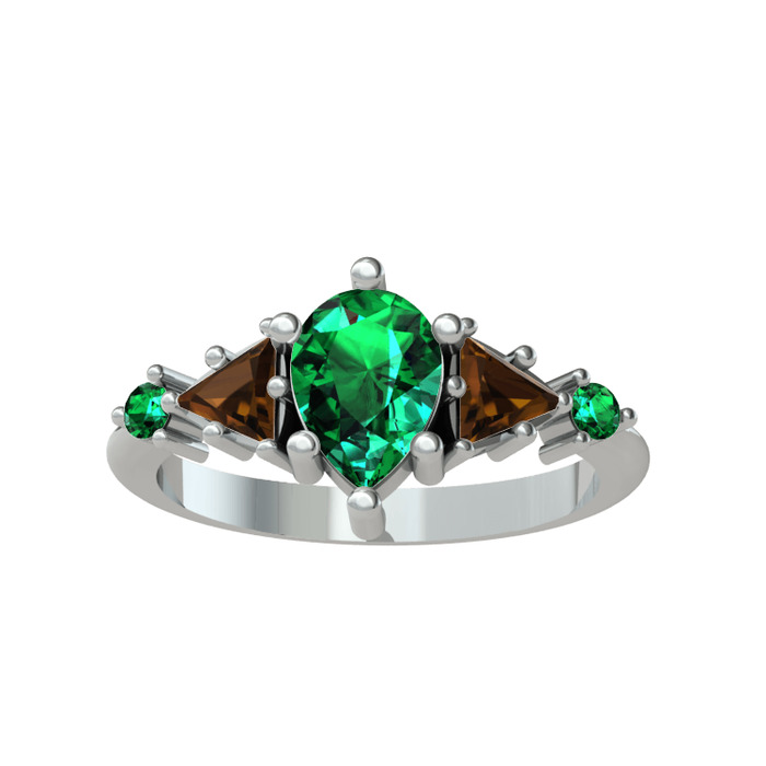 Yeşil kuvars ve dumanlı kuvars 18 ayar beyaz altın yüzük