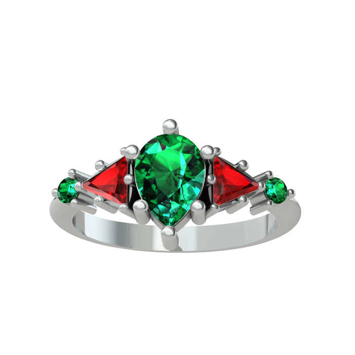 Yeşil kuvars ve garnet 8 ayar beyaz altın yüzük