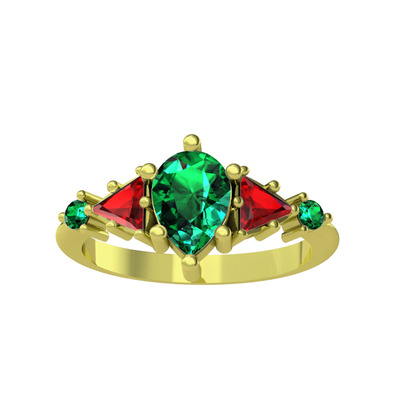 Yeşil kuvars ve garnet 925 ayar altın kaplama gümüş yüzük