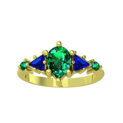 Yeşil kuvars ve lab safir 18 ayar altın yüzük