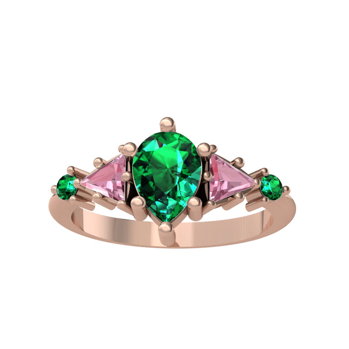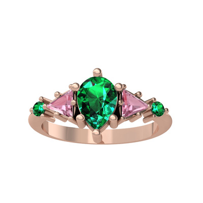 Yeşil kuvars ve pembe kuvars 925 ayar rose altın kaplama gümüş yüzük