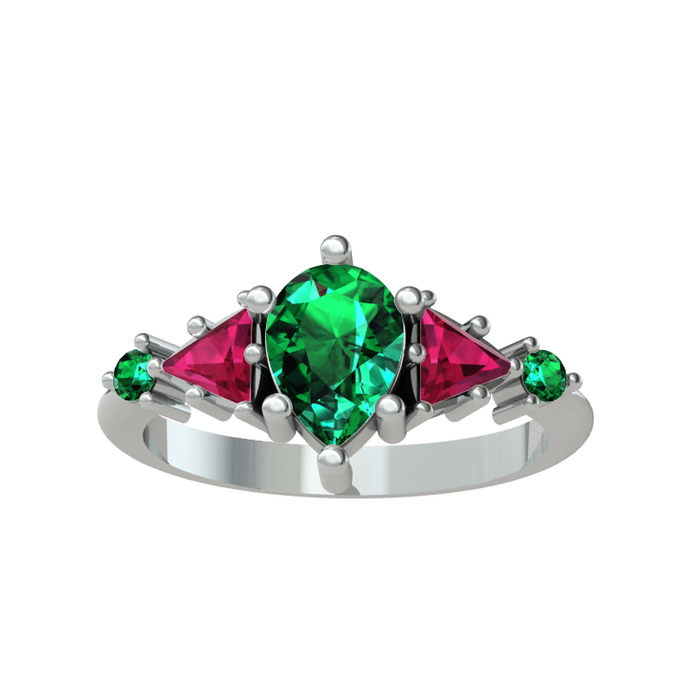 Yeşil kuvars ve rodolit garnet 8 ayar beyaz altın yüzük