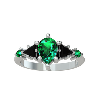 Yeşil kuvars ve siyah zirkon 18 ayar beyaz altın yüzük