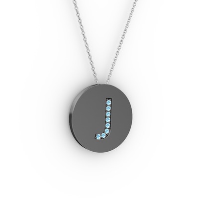Akuamarin 925 ayar siyah rodyum kaplama gümüş kolye (40 cm beyaz altın rolo zincir)