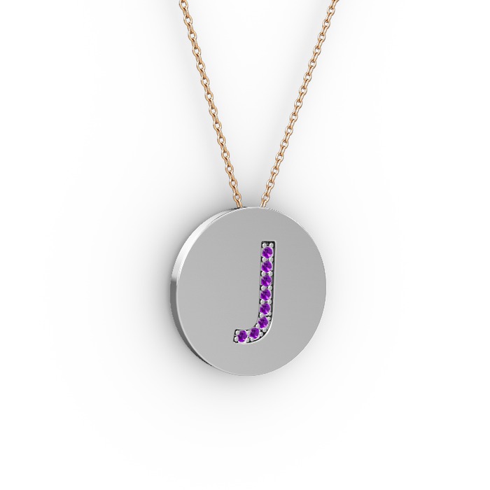 Ametist 18 ayar beyaz altın kolye (40 cm rose altın rolo zincir)