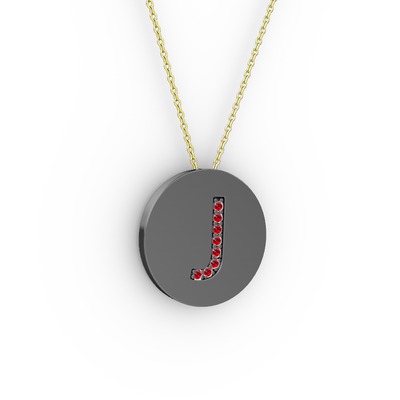 Garnet 925 ayar siyah rodyum kaplama gümüş kolye (40 cm altın rolo zincir)