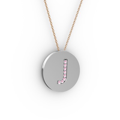 Pembe kuvars 14 ayar beyaz altın kolye (40 cm rose altın rolo zincir)