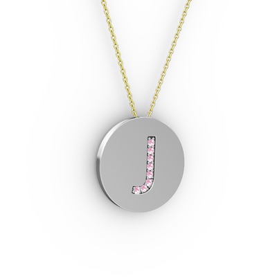 Pembe kuvars 8 ayar beyaz altın kolye (40 cm altın rolo zincir)