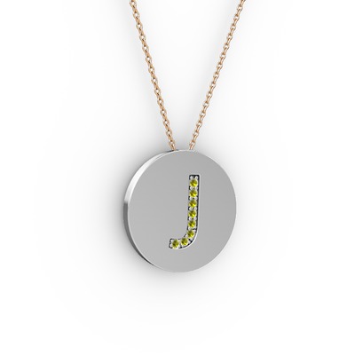 Peridot 8 ayar beyaz altın kolye (40 cm rose altın rolo zincir)