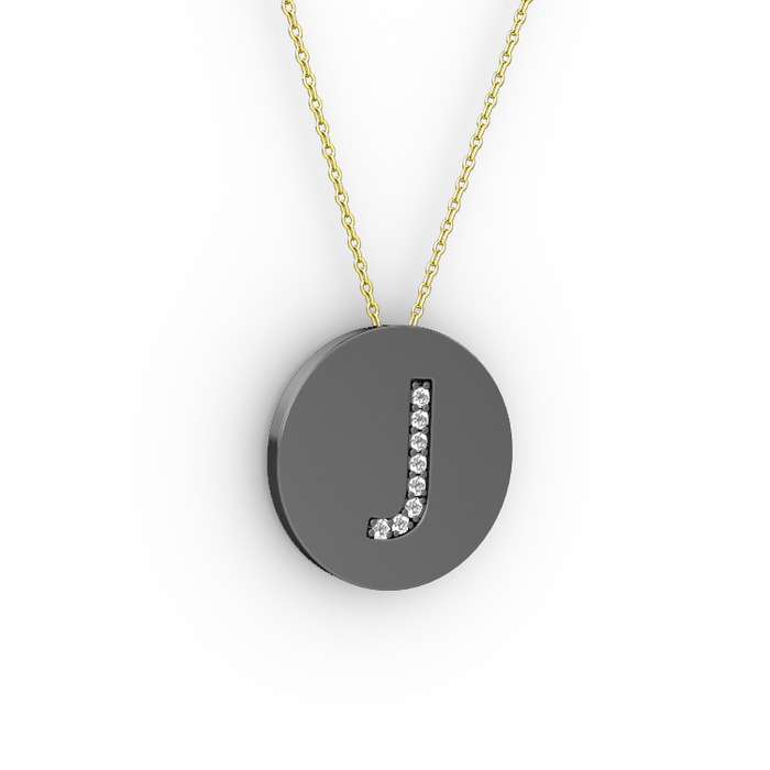 Pırlanta 925 ayar siyah rodyum kaplama gümüş kolye (0.0704 karat, 40 cm altın rolo zincir)