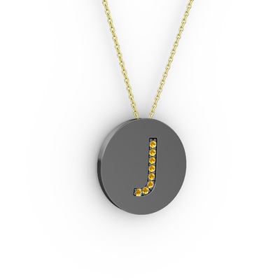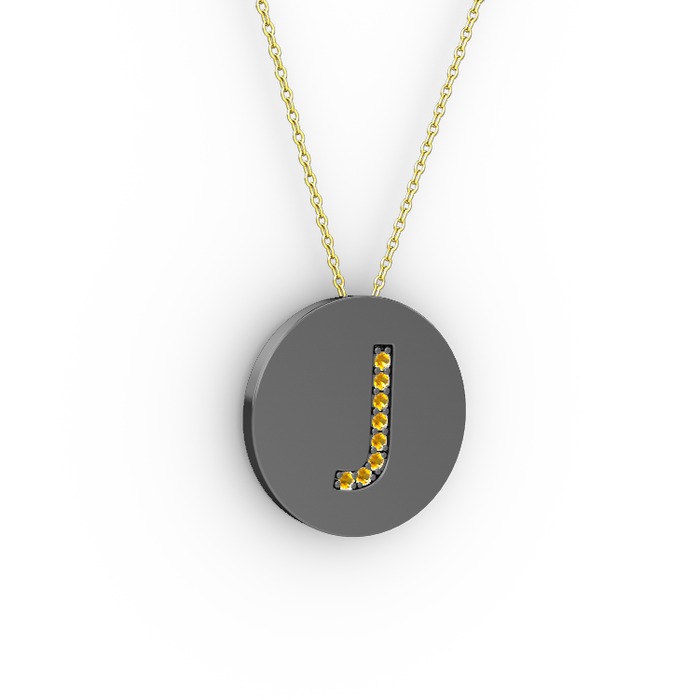 Sitrin 925 ayar siyah rodyum kaplama gümüş kolye (40 cm altın rolo zincir)
