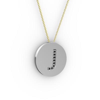 Siyah zirkon 18 ayar beyaz altın kolye (40 cm gümüş rolo zincir)