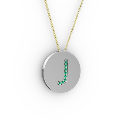 Yeşil kuvars 14 ayar beyaz altın kolye (40 cm gümüş rolo zincir)