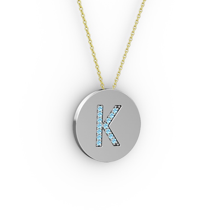 Akuamarin 8 ayar beyaz altın kolye (40 cm altın rolo zincir)